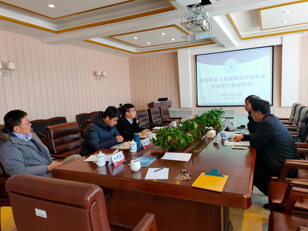 11月19日,上海健康医学院医疗产品管理系主任蒋海洪和朱文明老师应邀来MG冰球突破官网进行调研。会议由学院副院长崔勇主持,学院院长张景海,教务处副处长、学院副院长项荣武,工商管理学院副院长黄哲出席了会议。