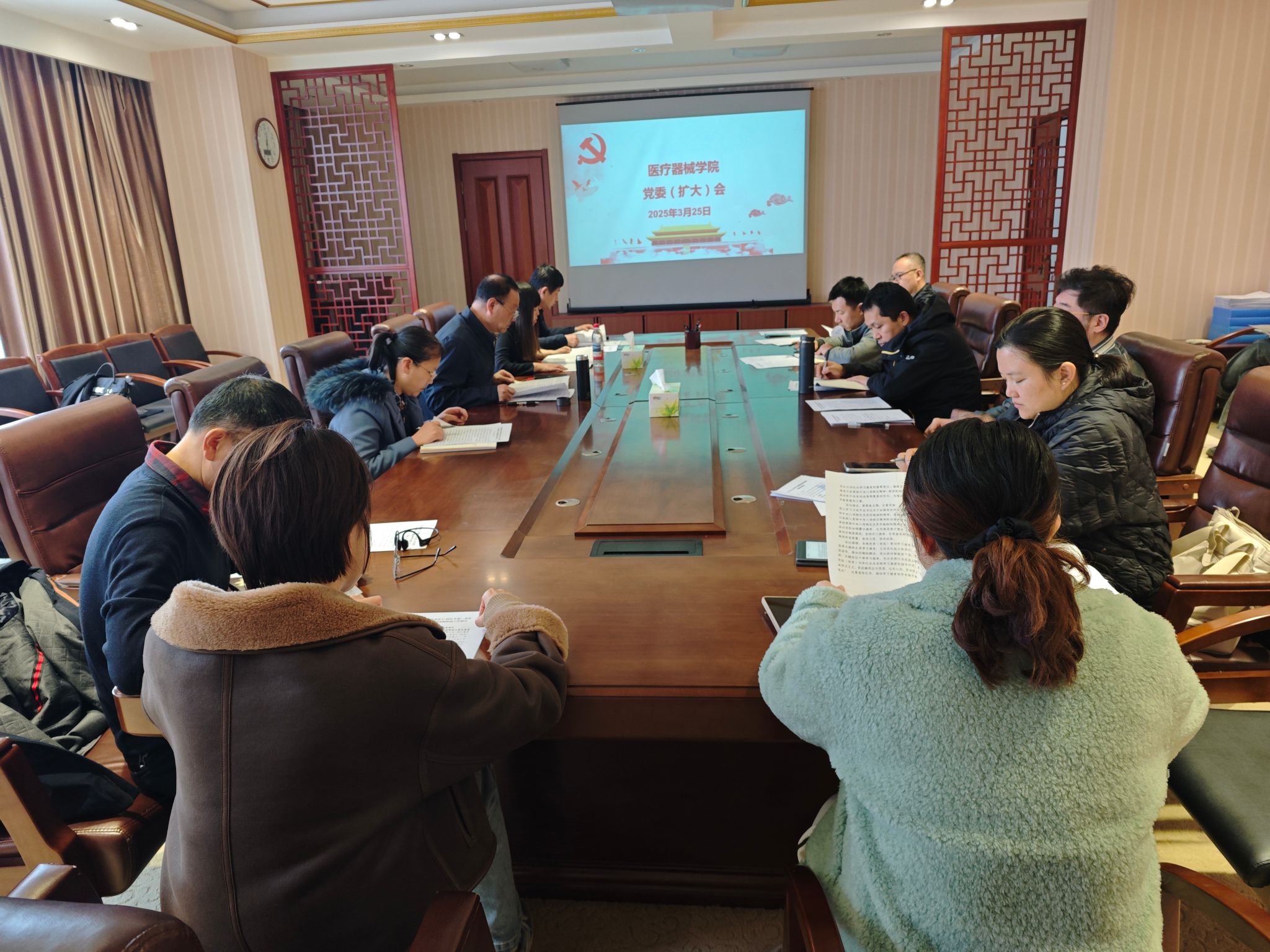 3月25日中午,MG冰球突破网站召开党委(扩大)会议,启动部署深入贯彻中央八项规定精神学习教育。学院党委书记裴志强主持会议,学院领导班子成员、党委委员、各系、教研室(中心)主任、各党支部书记参加会议。