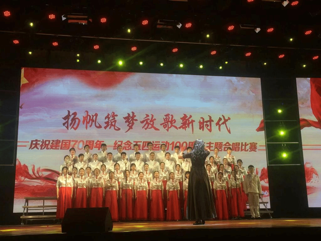 学校为激励和引领广大青年学生大力弘扬以爱国主义为核心的伟大民族精神,校团委于2019年5月16日晚六点,在大学生活动中心礼堂,举办“扬帆筑梦放歌新时代”庆祝中华人民共和国成立70周年、纪念五四运动100周年主题合唱比赛。我们MG冰球突破网站代表队演唱的《我和我的祖国》,《黄河大合唱》两支歌曲在比赛中荣获三等奖。