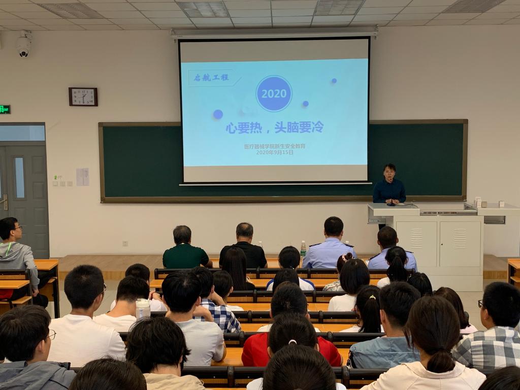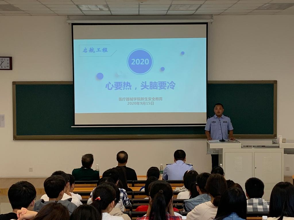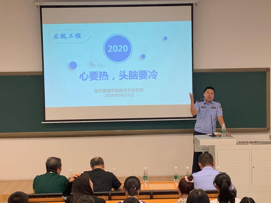 2020年9月15日下午,MG冰球突破网站新生起航工程第一课校园安全教育在MG冰球突破网站南校区第三教学楼103教室举行。石桥子派出所王剑副所长、高新区公安分局刑警大队预审中队长姜楠警官、学生处安平处长、保卫处裴志强副处长、全校辅导员及MG冰球突破网站2020级全体本科生和研究生新生参加活动。活动由MG冰球突破网站党委副书记赵宏格主持。