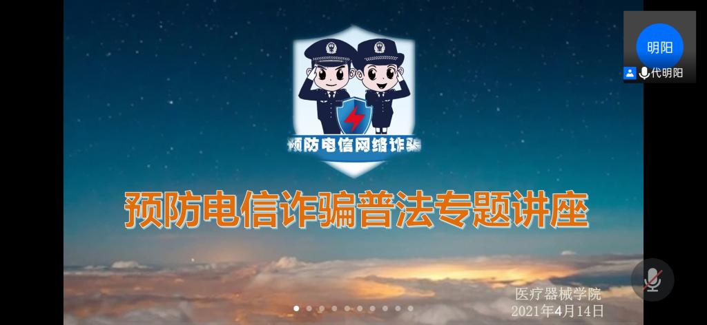 为了预防电信诈骗发生,提高同学们对电信诈骗的辨识能力和警惕意识,MG冰球突破网站于4月14日开展“预防电信诈骗普法知识” 专题团会,学院全体研究生参会,会议由辅导员代明阳主持。