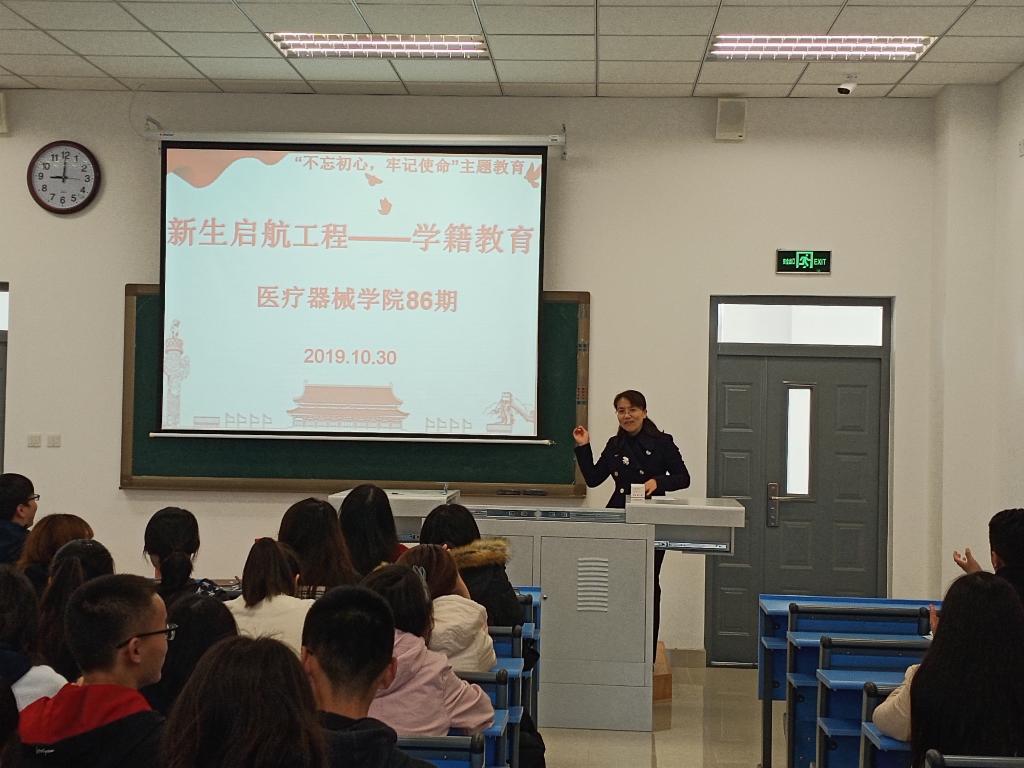2019年10月30日,教务处副处长、MG冰球突破网站副院长项荣武为全体86期新生做学籍教育讲座。学院党委副书记赵宏格、辅导员宋菁参加活动。