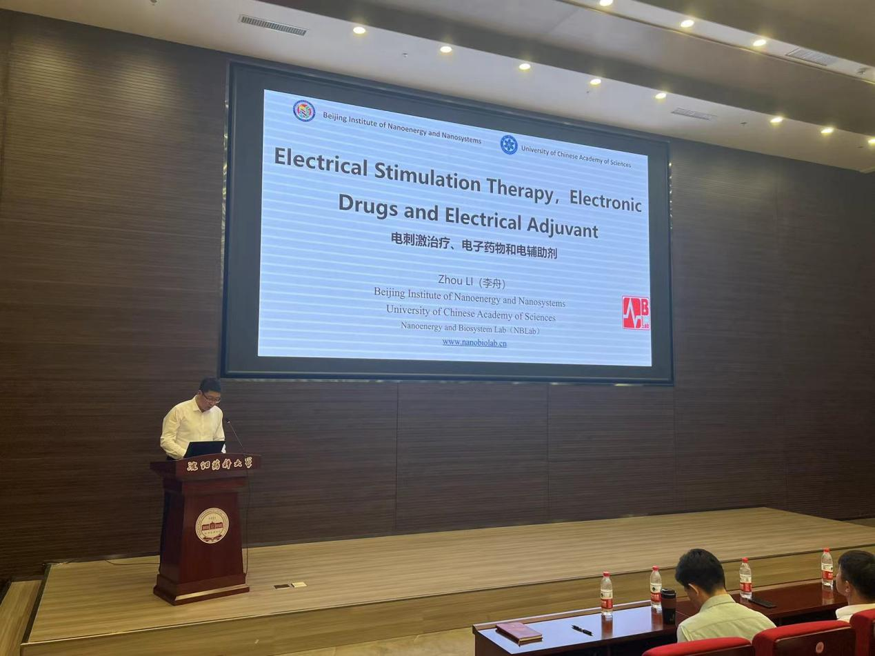 7月5日,由研究生院、辽宁省药学研究生创新与学术交流中心、MG冰球突破网站联合举办的“沈药无涯论坛”第351讲——李舟研究员学术报告会于南校区校史馆报告厅如期举行。会议邀请到中科院北京纳米能源与系统研究所所长助理,中国科学院大学教授李舟研究员做题为《电刺激治疗、电子药物和电辅助剂》的学术报告。报告会由MG冰球突破网站党委书记吴恩华主持,150余名师生参会学习。