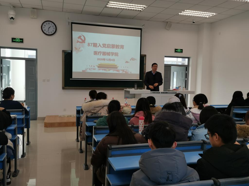 为进一步提高学生对党的认识,提高学生的政治意识,更好的完成党交给新时代大学生的使命与担当,12月4日下午,MG冰球突破网站党委书记吴恩华在第四教学楼201教室为2020级全体新生上了一堂生动的入党启蒙教育课。报告会由学院党委副书记赵宏格主持, 学院组织员、辅导员和全体新生同学聆听了党课,重温入党初心。