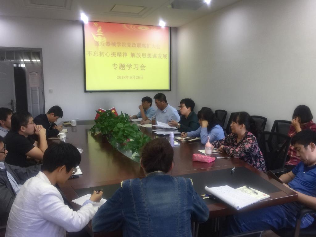 9月26日,MG冰球突破网站在院党群工作室召开党政联席(扩大)会,开展“不忘初心振精神解放思想谋发展”专题学习。院领导班子全体成员、院党委委员、系主任、教研室主任、实验中心主任、教师代表参加了本次专题学习会,会议由院党委书记李哲主持。