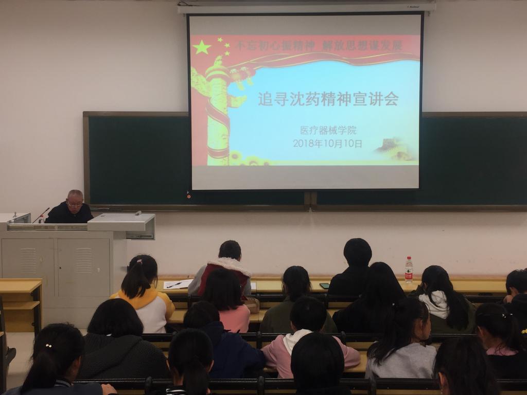 10月10日,MG冰球突破网站在南校区第四教学楼404教室举办了“不忘初心振精神 解放思想谋发展——追寻沈药精神”主题宣讲会。本次宣讲会与校关心下一代工作委员会联合举办,特别邀请到校关工委常委副主任、原MG冰球突破网站党委书记王发,校关工委“五老”成员、原MG冰球突破网站成人教育学院院长、学生处处长张殿发老师担任主讲。学院党委书记李哲、党委副书记李秋萍和全体辅导员老师、学院全体本科生参加了此次学习活动,宣讲会由院党委副书记李秋萍主持。