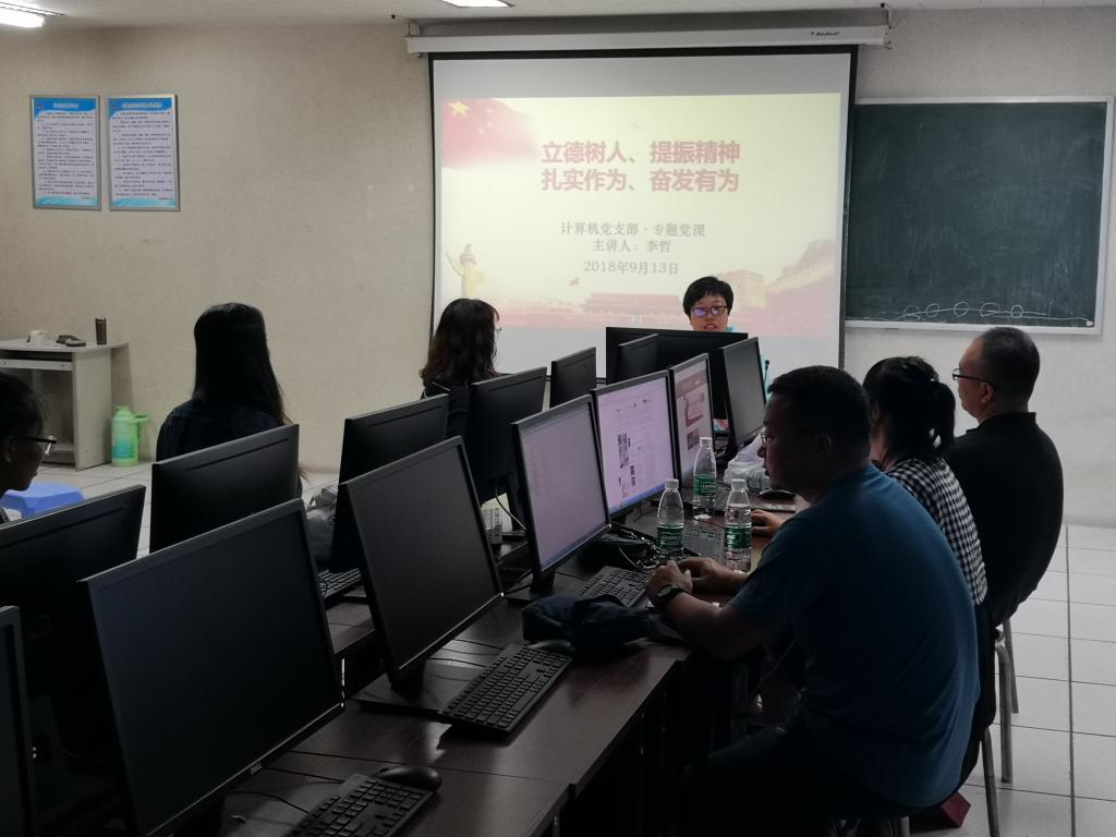 9月13日,MG冰球突破网站党委书记李哲在校本部计算机房为计算机党支部上题为《立德树人 提振精神 扎实作为 奋发有为》党课。