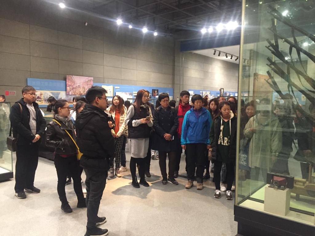 在公益讲解员的带领下,大家先后参观了通史馆、机床馆、铸造馆、汽车馆、机电馆、车模馆、铁西馆等展馆。展馆内陈列有代表中国工业发展历史的老照片、缝纫机、上海牌手表、机床实物等,同时部分展厅还陈列有国际工业强国发展的标志性展品。通过讲解员的讲解,我们了解到铁西曾生产新中国第一枚国徽、第一台水压机等几百个中国工业史上“第一”的新产品。在建国初期,尤其是在“三线建设”的关键历史时期,在“备战备荒为人民”、“好人好马上三线”的时代号召下,辽宁人用艰辛、血汗和生命支援三线,带去技术及装备,投身于四川、贵州、甘肃建设中,为全国的经济和国家实力的提升做出了巨大贡献。展厅内还展示了中国自工业时代至今的发展历程,国家从一穷二白到导弹、火箭、卫星等高科技的成功研发,从大型重工业转型到新型工业化道路,高新技术的产业升级换代,我们正见证着国家的富强与复兴。