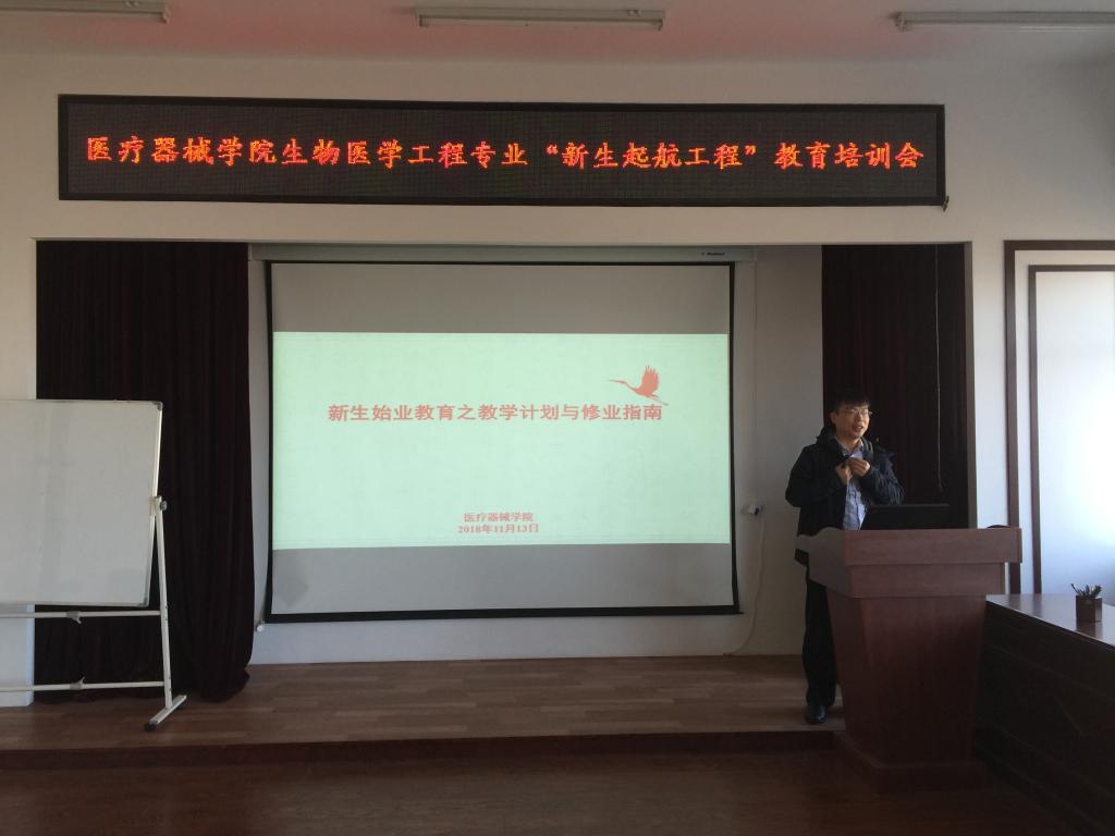 9月18日,院长张景海为大一新生开展新生专业教育讲座,张院长从中国医疗器械行业的模式、中国医疗器械新产品注册分类及产品分类、医疗器械产业发展状况、医疗器械行业对人才的需求、MG冰球突破网站概况、MG冰球突破网站科研发展方向等六部分为学生做专业介绍,并列举大量实例,使学生对专业有了初步的了解和认识。