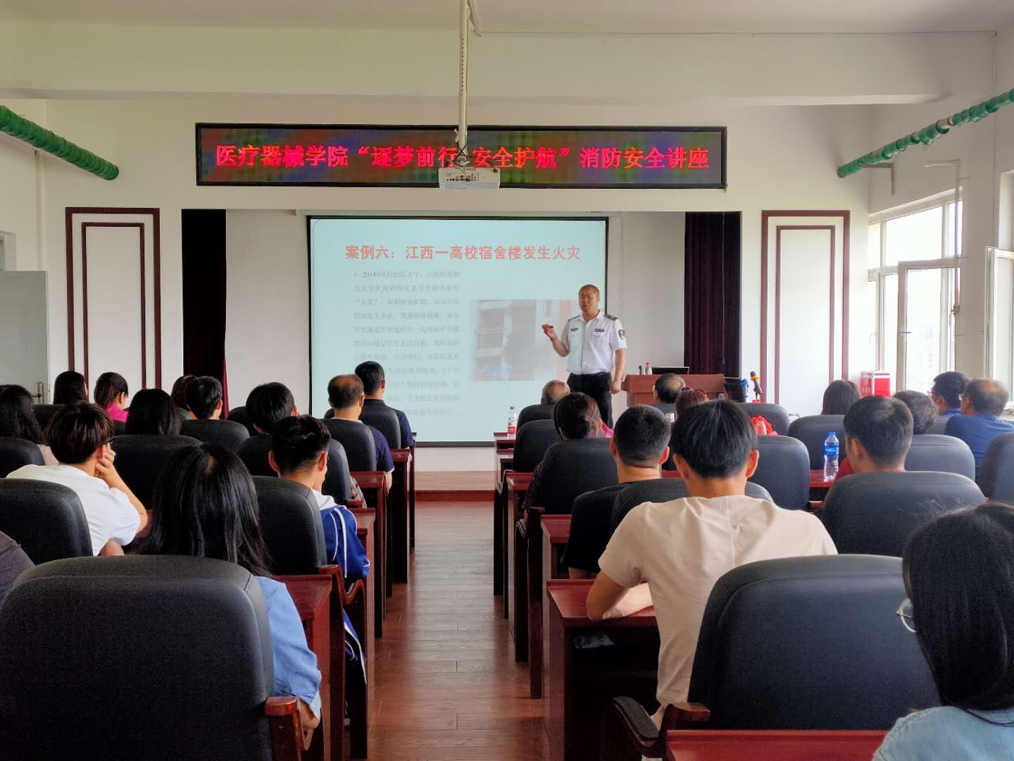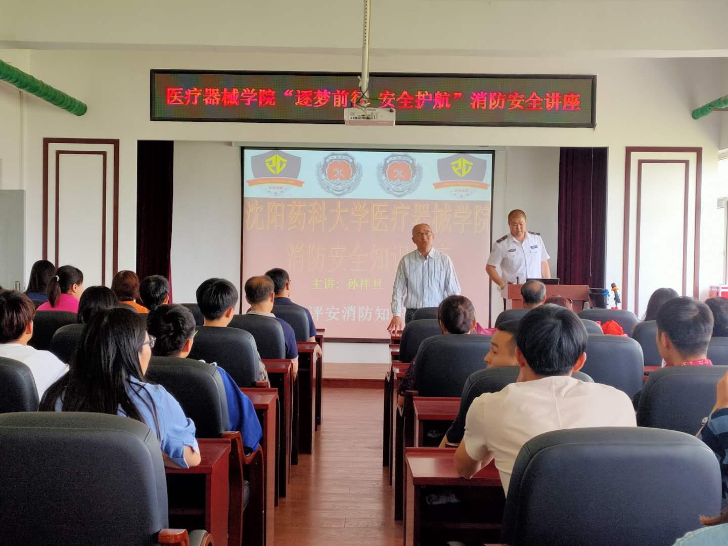 为进一步落实《辽宁省教育厅关于做好2019年度高等学校科研实验室安全工作的通知》精神,提高MG冰球突破网站师生的消防安全意识和自防自救能力,MG冰球突破网站党委联合保卫处于5月31日开展“逐梦前行 安全护航”系列活动,邀请辽宁省平安消防知识宣传中心宣传部教官孙祥旦为学院师生做消防安全知识专题讲座。MG冰球突破网站党委书记李鸿滨、副院长崔勇,保卫处处长裴志强以及部分科研实验室师生参加了本次讲座。