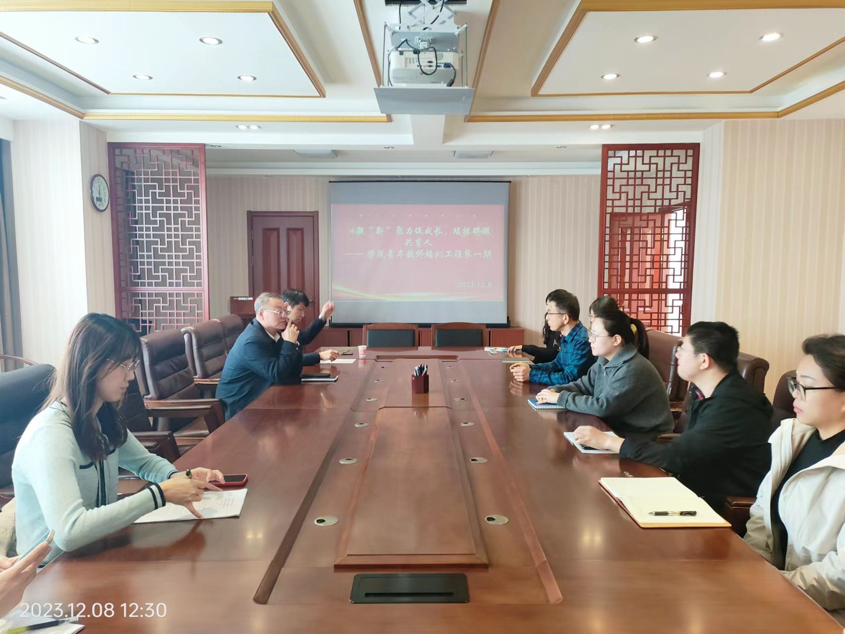 12月8日,MG冰球突破网站在学院小会议室举行凝“新”聚力促成长,培根铸魂共育人——学院青年教师培训工程启动仪式,对学院近五年入职的新教师进行教学经验提升培训。会议由教学副院长崔勇主持,学院党委书记裴志强出席会议。