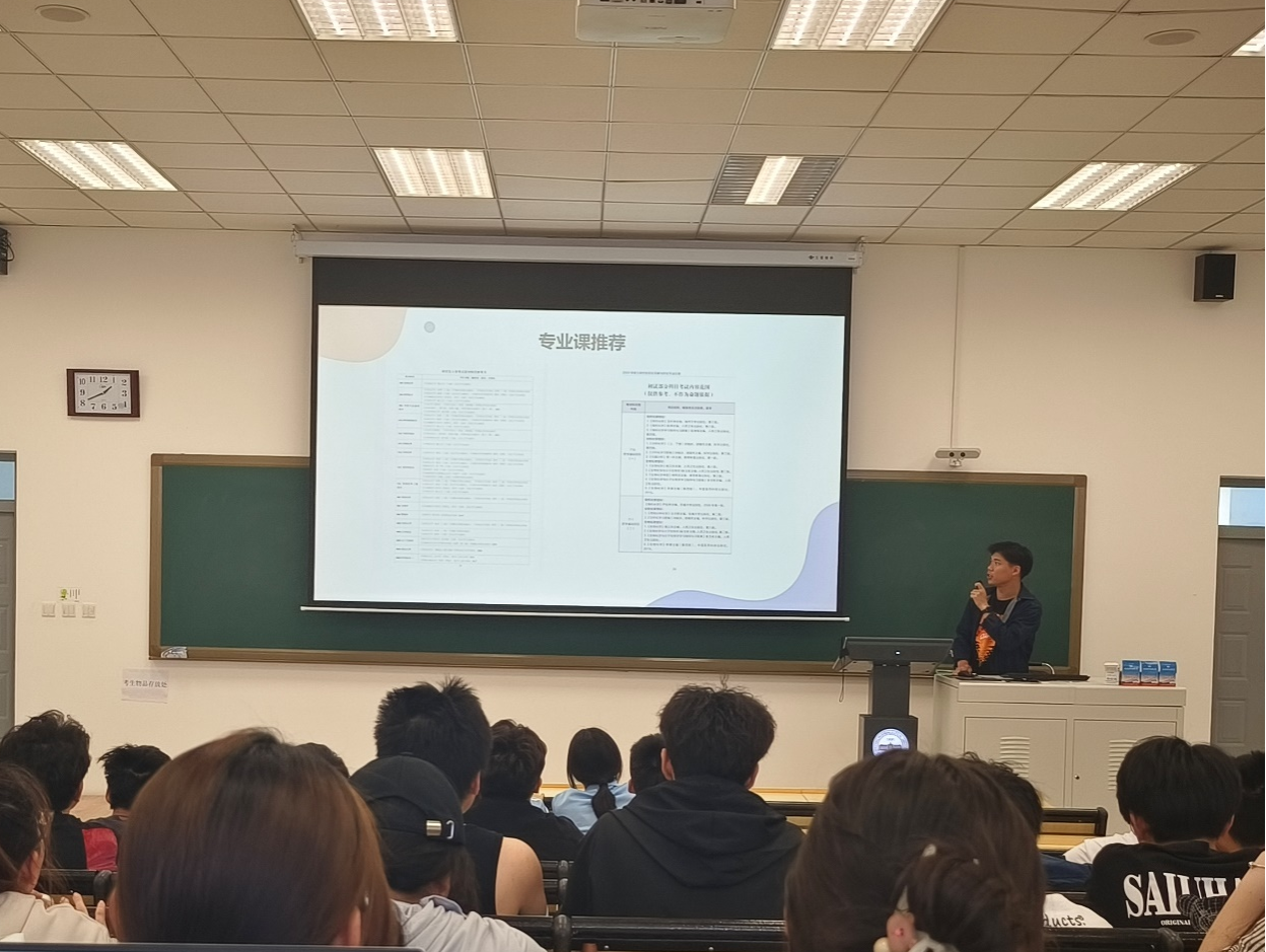 交流会邀请了学院2024届(87期)本科应届毕业生郭佳、曲浩林、吴坤阳、王梓萌、王春豪5名同学进行大学四年学业生涯经验分享。5名同学从学习、科研、学生工作、实践经历、综合能力等多个维度,从保研、考研、考公、求职四个不同的就业方向入手,为全体大一学生分享自己四年的学业生涯规划,帮助同学们规划大学四年应当如何度过,为即将进入大二阶段同学提供宝贵的经验。