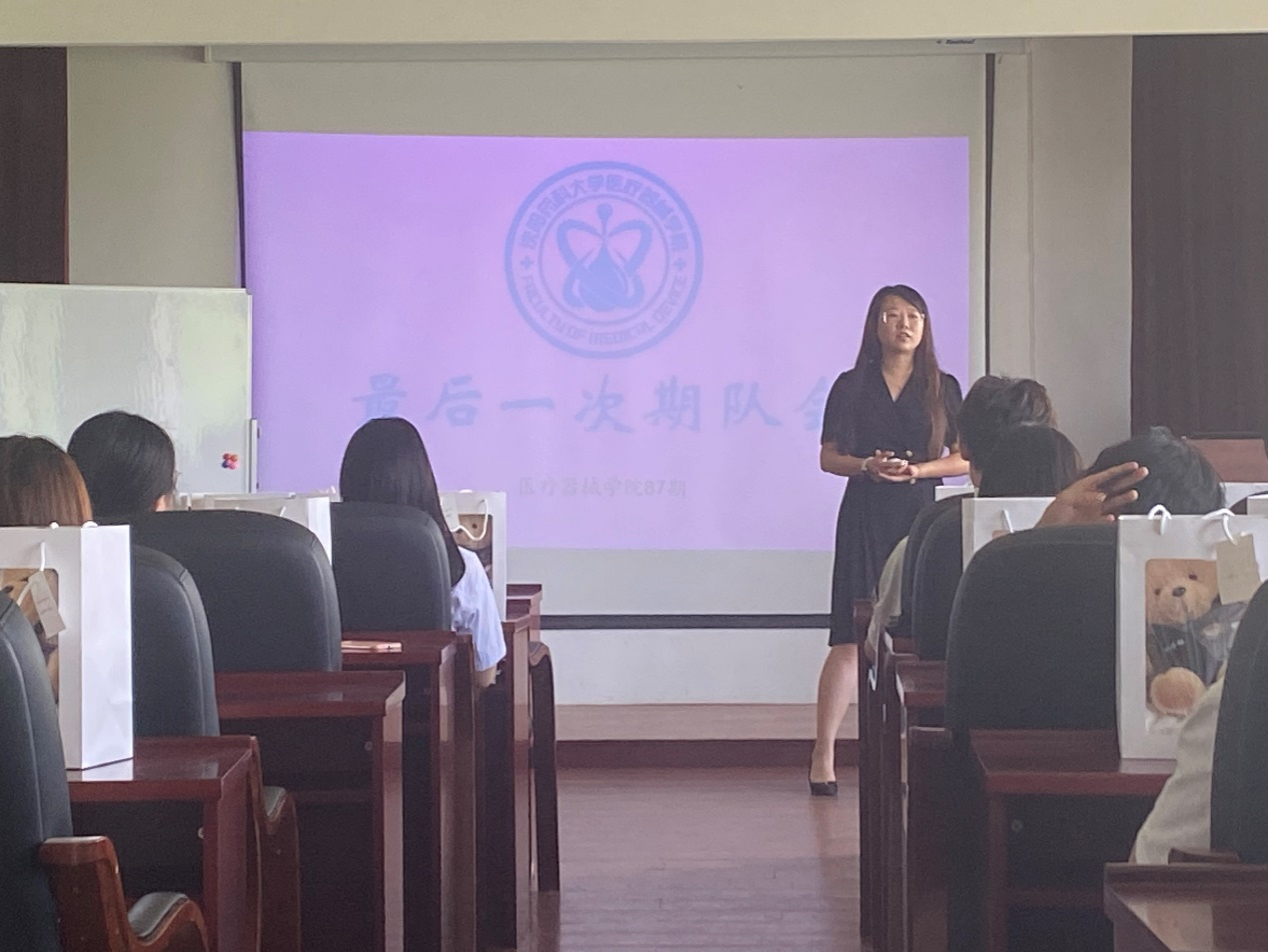 庆幸相遇,无憾别离。同学们即将完成学业,告别母校,踏上新的人生征程。同学们深情回顾了大学期间的点点滴滴,勾起了大家心中美好的回忆,过往的一幕幕浮现眼前,令在场的全体毕业生为之动容。辅导员刘晓康对同学们作毕业前最后的嘱咐,讲解了目前就业形势、抢抓关键期、积极就业以及离校前后相关工作等内容。提示全体同学在毕业季的人身和财产安全,要求全体同学遵守校规校纪,在毕业阶段文明离校,对近期学院、学校关于毕业论文、毕业各类活动的时间安排进行简要介绍。大家一起感慨岁月匆匆,惟愿总相逢,刘老师对全体毕业生致以真诚的祝福,期待全体毕业生成为有理想、敢担当、能吃苦、肯奋斗的新时代好青年,为祖国的医药事业和高等药学教育的发展贡献力量。