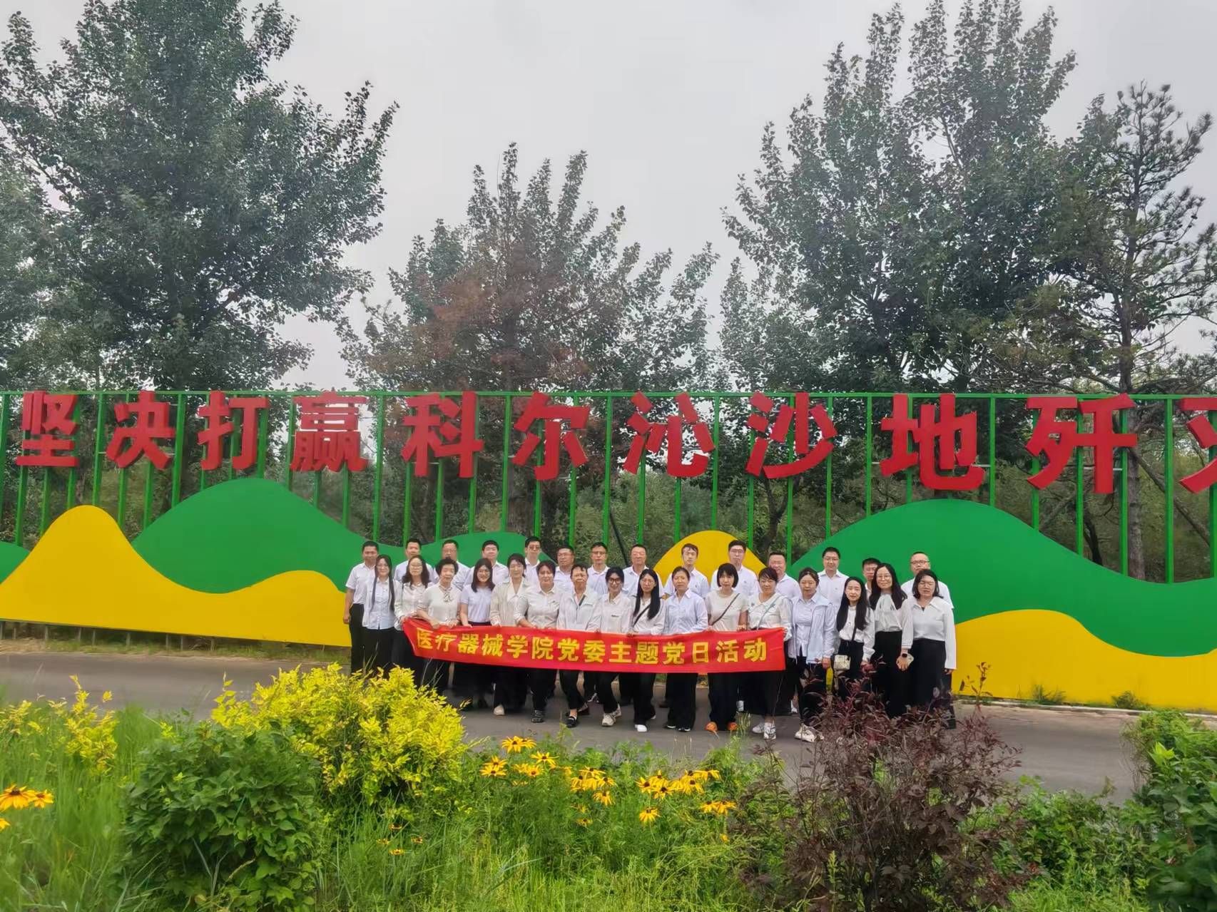 7月8日,MG冰球突破网站党委赴阜新市彰武治沙学校开展了"弘扬治沙精神,发挥模范作用”为主题的党日活动。学院党委书记裴志强、副书记赵宏格及教工党员参加了本次活动。