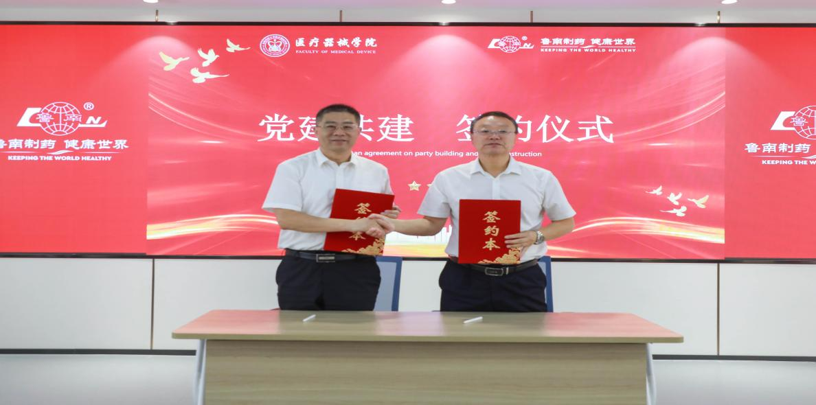 MG冰球突破网站党委书记裴志强代表学院与鲁南制药集团机关党总支委员曹广军签署了校企“产学研用”深度融合党建联建共建协议书。这一仪式为双方在党建工作方面的交流与合作搭建了全新且高效的平台。以党建促发展,秉持“以学促产”、“以产带学”的理念,通过积极共享党建资源、广泛交流党建经验,双方必将共同推动党建工作与业务发展的深度融合,齐心协力,携手并肩,为培育大健康领域的优秀人才贡献强大力量。