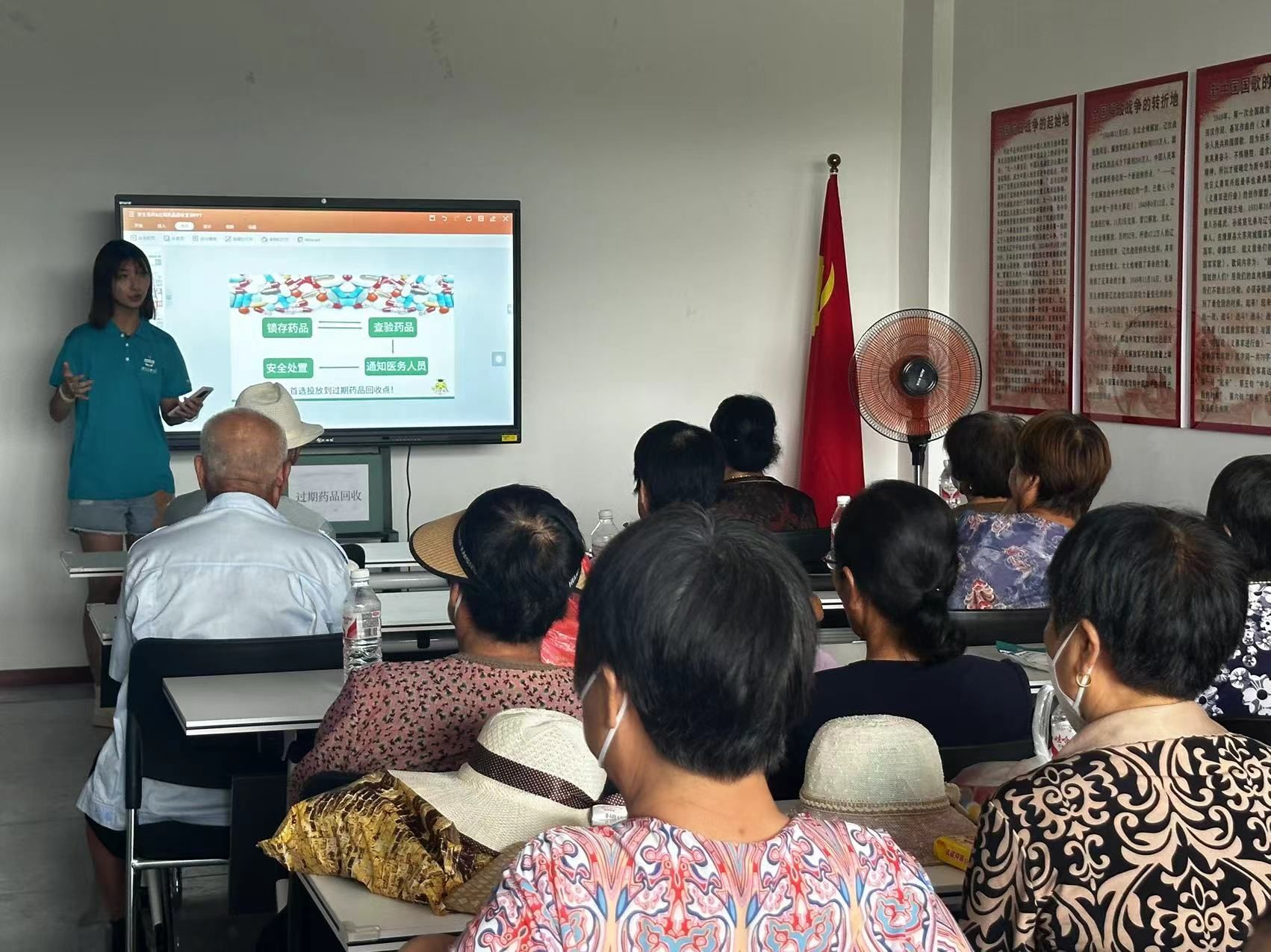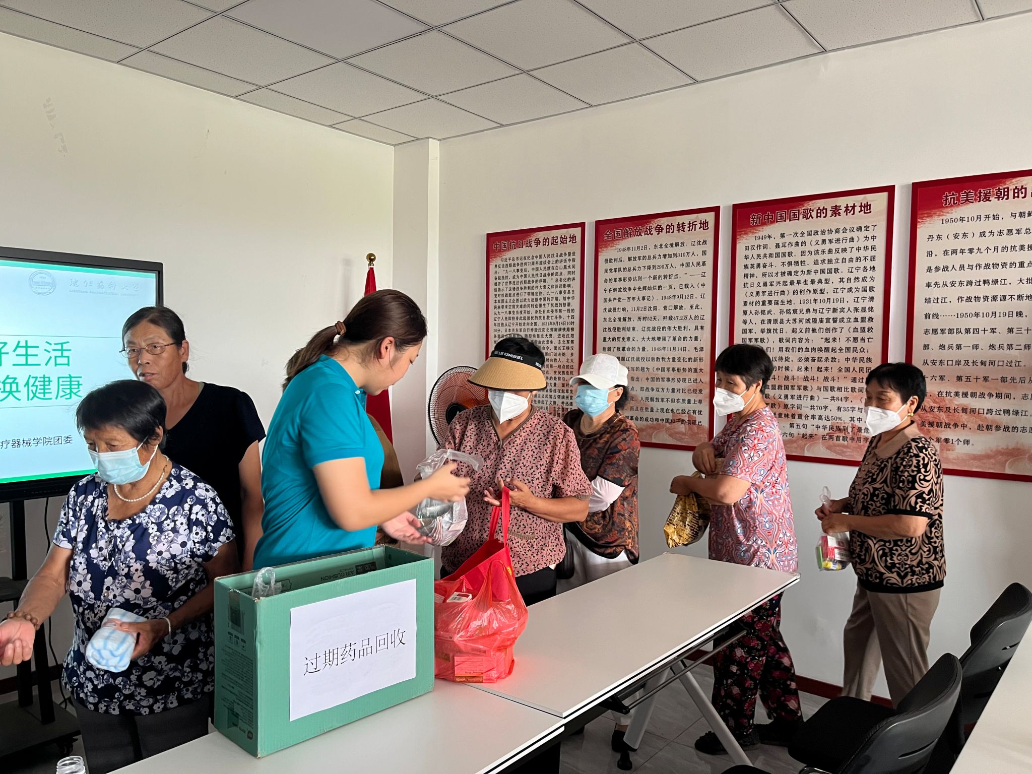 仪式后,已入选全国大学生“乡村振兴·笃行计划”示范性团队推荐名单的MG冰球突破网站MG冰球突破网站“沈药东沟健康助力团”在东沟村开展实践活动。实践团队成员深入村民群众之中,开展“安全用药”、“过期药品回收”等主题宣讲,从案例分析入手,详细介绍了高血压、糖尿病、中风、心脏病等常见基础疾病的临床表现及作用机制、老年人用药注意事项以及过期药品的安全处置与回收,宣讲语言生动、贴近生活,让老百姓能听得懂、记得住。另外还设立了健康用药服务点,实践团成员将定期到村服务,结合自身专业所长为村民提供专业、细致、耐心地解答,引领村民树立科学用药、合理用药、不盲目囤药的自我健康管理理念。