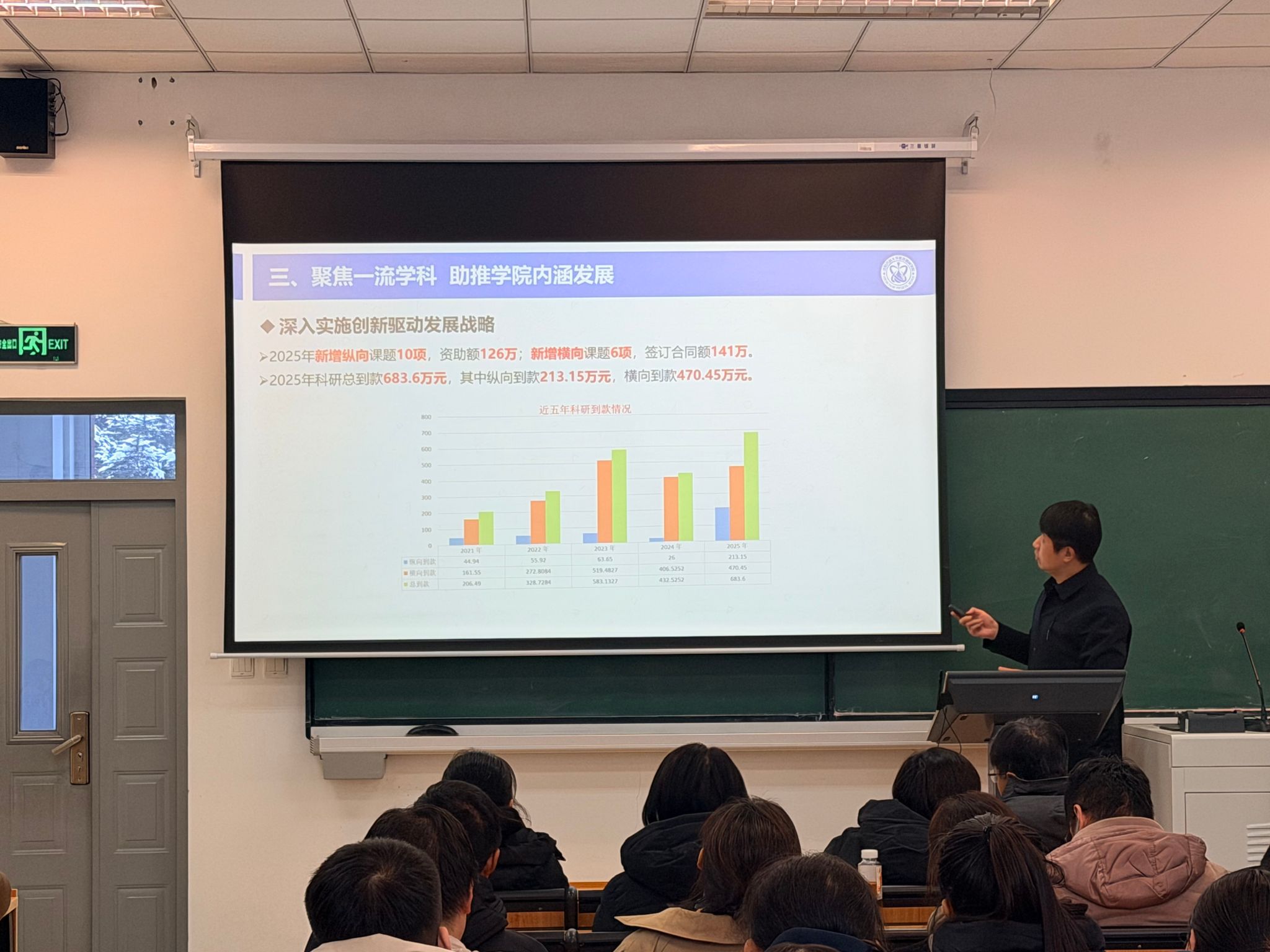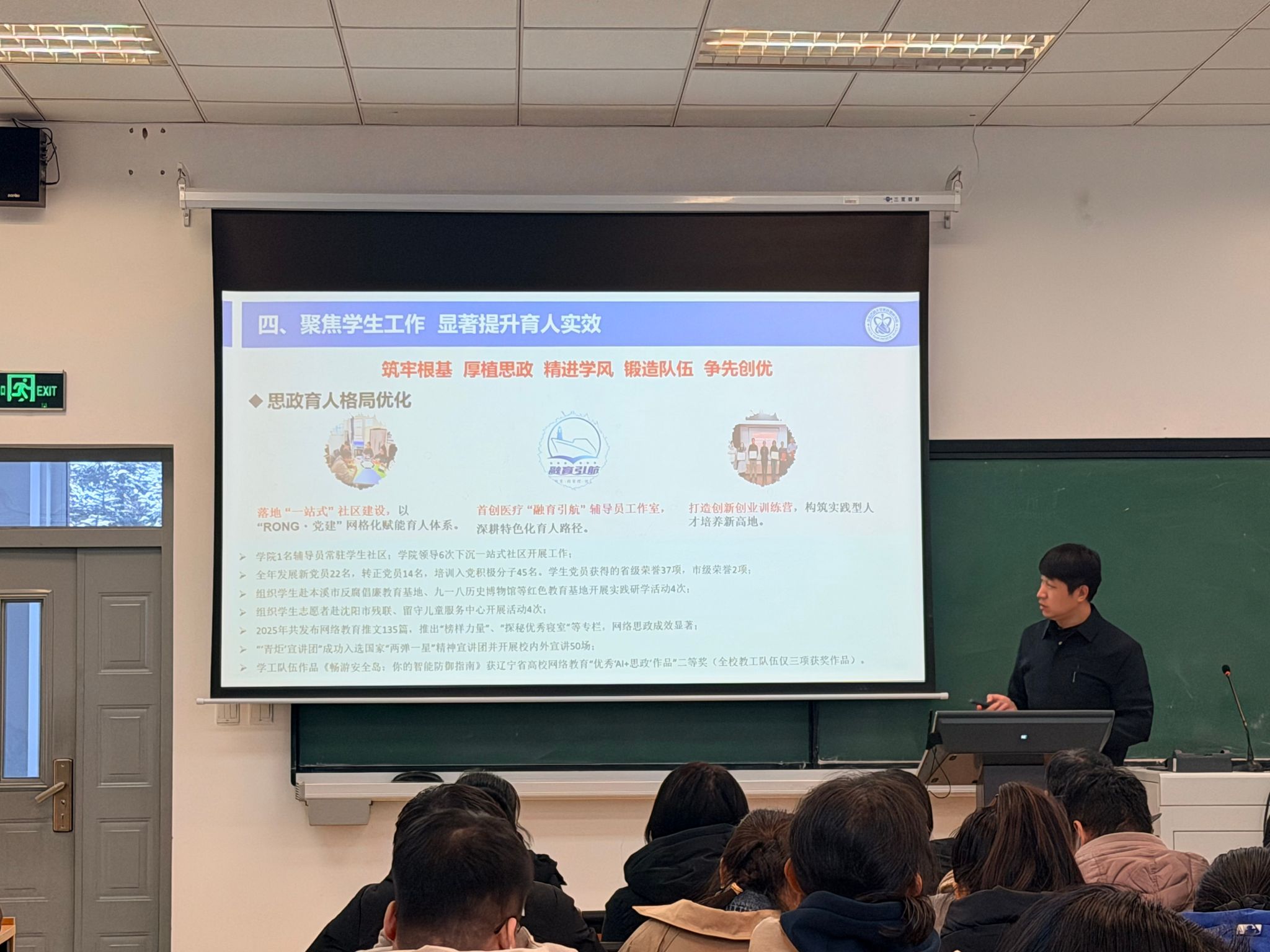 副院长(主持工作)崔勇代表学院领导班子作年度工作总结报告,明确指出2025年学院在校党委坚强领导下,全面贯彻党的二十大和二十届历次全会精神,深入落实辽宁全面振兴三年专项行动,紧扣学校“十四五”规划既定任务,全院师生团结拼搏、砥砺奋进,在党群建设、教育教学、人才培养、学科科研及社会服务等各项工作中均斩获阶段性成果。